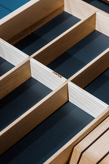 Un uso adicional del espacio nunca resulta excesivo. La experiencia y enfoque activo de cocinas Santos en este aspecto les permite ofrecer soluciones únicas, tratando de obtener el máximo de espacio útil, respecta al espacio total. Actúan en las tres direcciones —profundidad, altura y anchura—, y al mismo tiempo, en la posibilidad de estratificar los espacios y segmentar los soportes en diferentes alturas, niveles y separaciones.