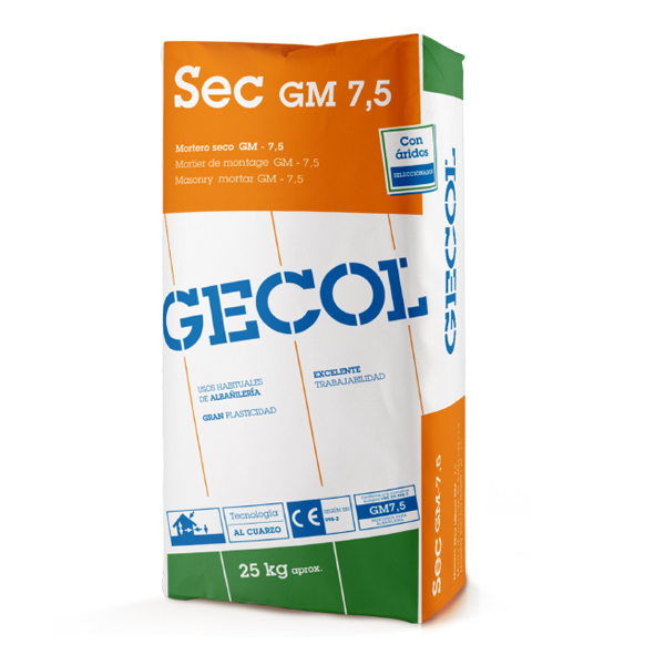 GECOL Sec silíceo es un mortero seco de cemento y áridos silíceos de primera calidad, preparado para su uso.