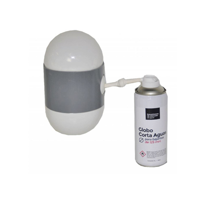 Globo corta aguas para retener aguas residuales durante una reparación. Diámetro: 125 mm.