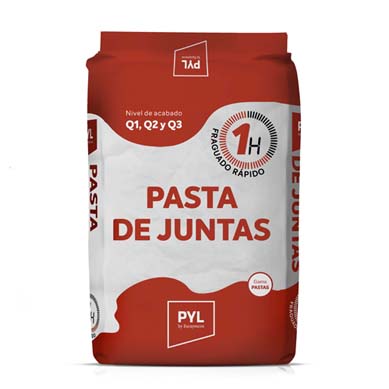 Pasta de fraguado rápido destinada al relleno y acabado de juntas con cintas de papel en los sistemas de placa de yeso laminado.
