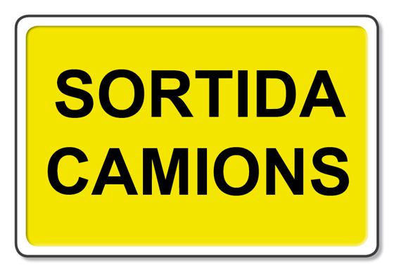 Placa complementaria "Sortida camions" rectangular de 20 x 40 cm.