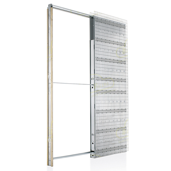 Estas estructuras de acero galvanizado crean un hueco en el interior del tabique por el cual corre la puerta al abrirse, quedando oculta.