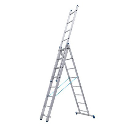 Escalera de aluminio extensible y convertible, de 3 tramos.