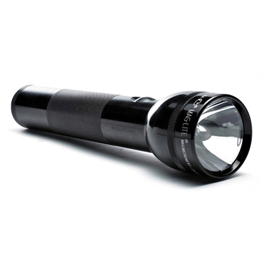 Linterna cilíndrica fabricada en aluminio anodizado negro.