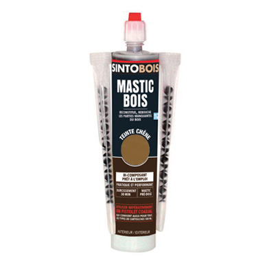 Masilla de poliéster bicomponente (contiene polvo de madera) Uso interior o exterior. Secado rápido (aprox 30 min), una vez seca se puede trabajar como la madera (atornillar, clavar, ribetear , etc.)