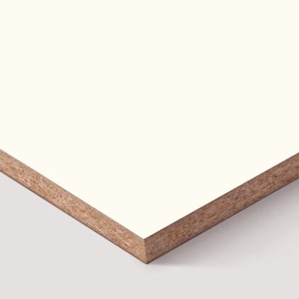 Melamina Blanca K-100 SM, dos caras de 100 gr. con base de aglomerado ignífugo.
