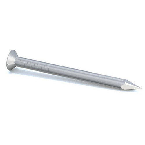 Punta de acero templado para clavado sobre hormigón. UNE 17022-B1. Acero cincado. Punta de diamante (4 caras piramidales). Clavado aprox. de 20% de longitud sobre hormigón de 200 Kg/cm² máximo. Para clavar maderas en hormigón u otro material de obra.