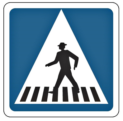 Fondo azul, modelo económico (indica la situación de un paso a peatones).