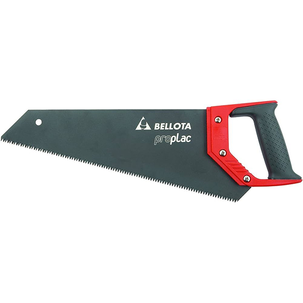 Corte de placas de yeso laminado. Extremo de la hoja en punta que facilita el corte en encuentros techo-pared. Mango con indicador de grados (45/90º).
