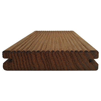El deck termotratado es un pavimento obtenido a través de un proceso tecnológicamente avanzado, a través de ciclos de temperatura y vapor en el que se alcanzan de 180ºC a 220ºC, modificándose la estructura molecular de la madera, confiriendo