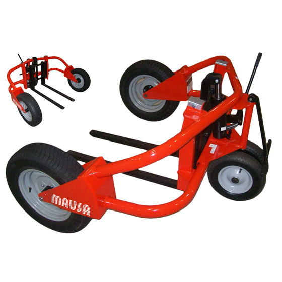 Transpaleta con ruedas neumáticas para pavimentos irregulares.