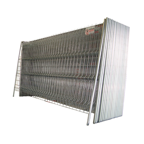 Bastidor de mallazo con alambres, plegado longitudinalmente para mejorar su rigidez. Postes soldados. Todo el conjunto galvanizado en caliente por inmersión. Unión entre bastidores mediante argolla incorporada.